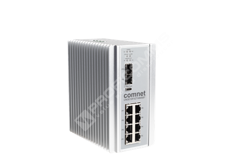 ComNet CNGE10FX2TX8MSBT: Managed Switch, 8 Port 10/100/1000Tx PoE (90W/port, 720W total), 2 Port 1/2.5G SFP, DIN/Wall Mount, Redundant PSU, Industrial -40°C to +70°C